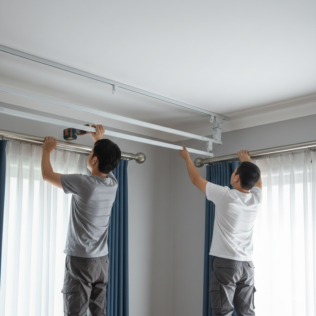 Our curtain installation services are designed to enhance both the appearance and functionality of your curtains across all types of rooms. Whether it's the living room where style matters most, the bedroom where privacy is key, or office spaces requiring a professional look, we ensure your curtains are installed perfectly. Adding curtain pelmet boxes not only conceals curtain tracks and rods but also adds a clean, sophisticated finish to your windows. These pelmets complement your interior decor, creating a seamless and elegant look. With precise installation, your curtains will drape beautifully and elevate your space’s overall ambiance.